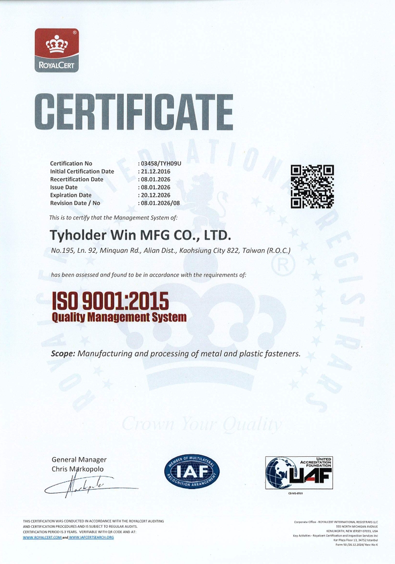 本公司自2016年導入 ISO-9001品管系統, 並逐年通過 ISO9001:2015之驗證。 今年2026再度通過 ISO9001系統檢驗,並取得證照! 本公司一向以符合客戶的需求為最高原則, 誠摯歡迎各界廠商的洽詢! ISO證照/ ISO Certification: 回列表